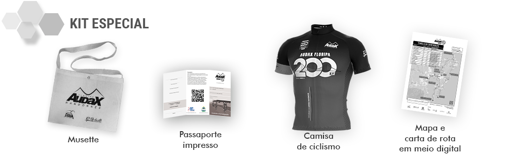 - Medalha e certificado impresso do Clube Audax Floripa para todos que cumprirem o percurso conforme regulamento;
